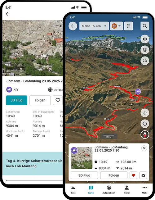 Rufe die Route unterwegs in der App auf und folge mit dem GPS Tracking deiner Planung