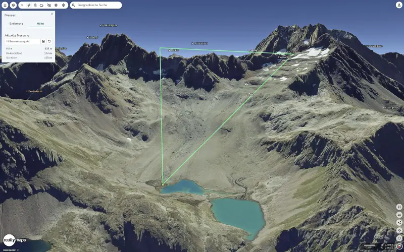 In der 3D Karte Entfernungen und Höhenunterschiede messen (nur Tourenplaner).