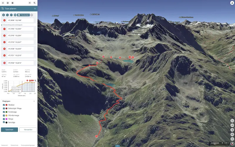 Touren in der 3D Karte planen