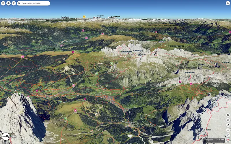 Touren direkt in der 3D-Karte (Tourenplaner) oder der topografischen Karte (App) planen. Im Tourenplaner geplante Touren werden automatisch mit der RealityMaps App synchronisiert.