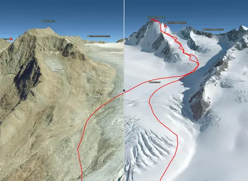 Ein direkter Vergleich in der 3D-Karte zwischen schneefreiem Sommergelände und verschneiter Winterlandschaft ist besonders hilfreich, um Geländestrukturen und Gefahrenstellen besser einzuschätzen: Felsbänder, Gräben, Lawinen-rinnen oder Lawinengras, die im Winter unter Schnee verborgen sind, sind im Sommerluftbild sichtbar und lassen sich präzise mit der winterlichen Situation abgleichen. So erhältst du ein tiefes Verständnis der Topografie und kannst kritische Bereiche besser beurteilen.