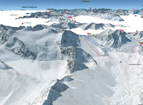 Für die Alpen haben wir für ausgewählte Regionen zusätzlich eine 3D Karte auf Basis von Winterluftbildern berechnet. Aktuell verfügbar sind die Zugspitzregion, Berchtesgaden, Allgäu, Vorarlberg, Kitzbühler Alpen, Ötztaler Alpen, den Skiverbund Ski Amadé im Salzburger Land und in der Steiermark, die Dolomiten in Südtirol und das Engadin in der Schweiz.