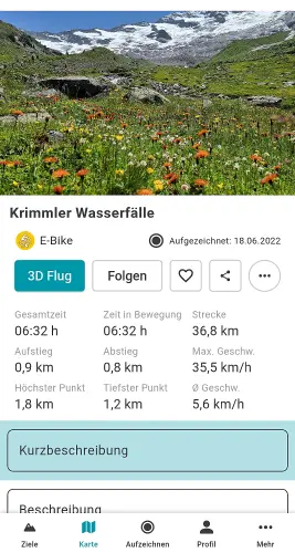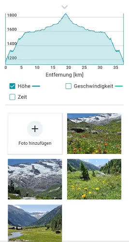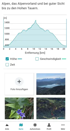 Selbstaufgezeichnete Touren werden zu deiner persönlichen Dokumentation von Erlebnissen im Gebirge. Länge, Höhenmeter, Zeit und Route halten fest, wo du unterwegs warst – ergänzt durch deine eigenen Beschreibungen und Fotos.